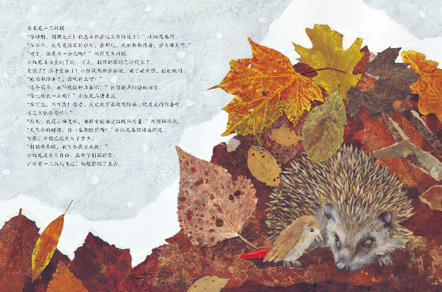 碰了碰刺猬,能给我一点吃的吗?”小红尾鸟请求道,