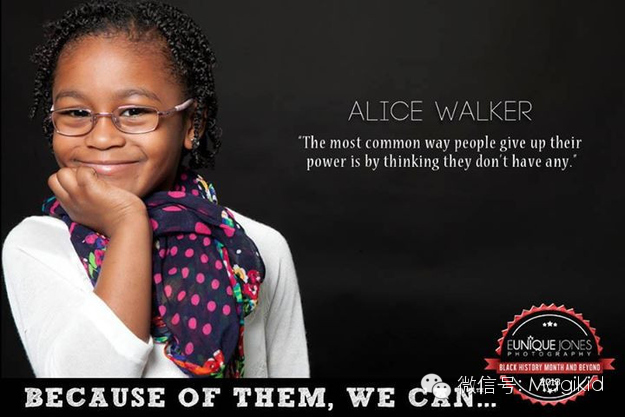 普立兹奖得主、小说家、诗人和社会运动人士,她在作品中反映黑人妇女为自身权利而奋斗,获得广大的回响,著有《紫色姊妹花》(The Color Purple)。